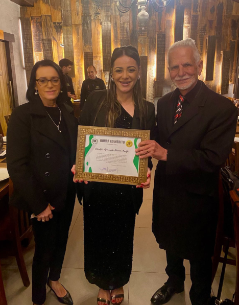 Diploma alusivo aos 150 anos de Migração Italiana ao Brasil e a Medalha Alusiva aos 150 anos de Nascimento de Santos Dumont.